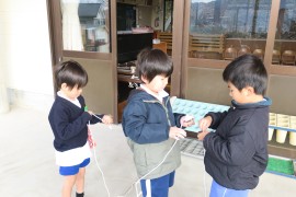 写真ギャラリー お正月と言えば・・・ 2021年12月20日(月) 月見幼稚園のお正月恒例の取り組みといえば、青組さんのコマ回しです。自分で絵や模様を描いた自分だけの“オリジナルコマ”を回せるように頑張っています。まだまだ取り組み始めなので、『投げる』にいく前の『ひもを巻く』ところで苦戦する子が多いです。冬休みにはコマを持って帰りますので、お家でも練習してみてくださいね。 もどる