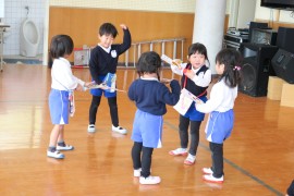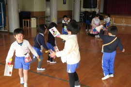 写真ギャラリー お正月と言えばその3 2021年12月22日(水) その3は黄組さんの『羽根つき』です。これも子どもたちの手作りですよ。これは大人が羽根つきをしても同じことですが、羽根が結構な速さで落ちてくるので、ラリーをするのはかなり難しいです。子どもたちはそれでもめげずに何度も挑戦し、ちょっとだけでもラリーになると大喜びしていましたよ。 もどる