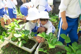 二人で話し合いながらいちごを探す子、バラバラで探す子、いちごを1つ手に持っているのにまだ探している子と様々な姿が見られました。