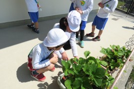園で育てているいちごが4月中旬から色づきだし、クラスごとに順番に味見をしてきました。