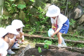 これから天気の良い日は、その日の“お当番さん”に水やりをしてもらって、『みんなで育てた野菜』にしたいと思います。