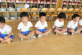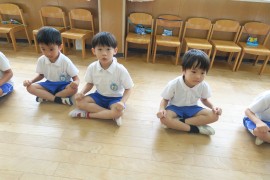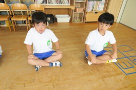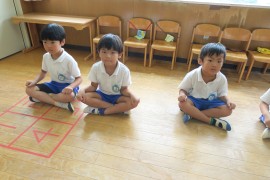 いつもは何事も楽しく笑顔で取り組んでもらうのですが、エイヤーだけは真剣そのもので、おふざけなんてもってのほか、という特別な活動です。