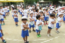 写真ギャラリー お集り 2023年9月21日(木) 9月も下旬となりましたが、残暑というには暑すぎる日が続いていますね。お遊び大会の取り組みもなかなかお外でやりにくいのですが、今日は曇り空で風もあって過ごしやすかったので、つきみ広場でお集まりをしました。みんなでハトポッポ体操をして、運動会の歌を歌って、行進をしてお部屋に帰りました。気候がよかったこともあり、子どもたちも元気いっぱいで楽しんでくれたように思います。 もどる
