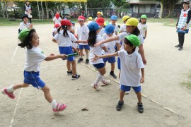 小学校入学に向けて、同じ小学校に行く友だちの間での仲間意識を強めてもらう狙いがあります。