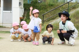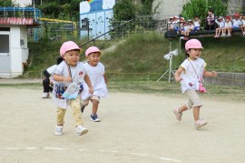 写真ギャラリー わかば組のかけっこ~お遊び大会~ 2023年10月3日(火) わかば組さんもお遊び大会でかけっこをします。お兄ちゃん・お姉ちゃんたちはトラックに沿って走りますが、わかば組さんのかけっこはまっすぐ一直線です。しゃがんで待ったり、前のお友だちがスタートしたら“ズリズリ”で前に詰めたり、名前を呼ばれたら返事をしたり、ちゃんと練習したわけではないのですが、普段お兄ちゃん・お姉ちゃんたちの姿を見ているからでしょうか、自然にできていて感心しました。 もどる