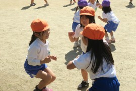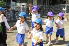 異年齢間での取り組みで、黄組さんは青組さんに親しみを持ち、青組さんは黄組さんをリードします。