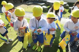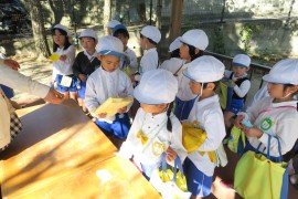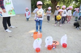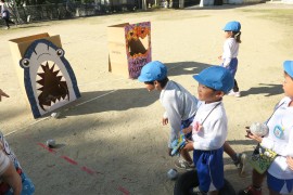 “お祭り”というと夏のお祭りのイメージが強いのか、「花火はいつやるん?」という子がいたり、わかば組さんには全部終わった後に、「先生、いつお祭りに行くん?」という子がいたりと、ちょっと“お祭りらしさ”の演出が足らなかったかな…と反省点も見つかりました。