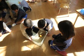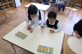 写真ギャラリー すみれ組とカメムシ~作品展~ 2023年11月22日(水) 「カエルはねぇ、カメムシを食べるんよ」たんぽぽ組のお友だちからそう教えてもらったすみれ組さん。“えっ?カメムシってくさいだけの虫じゃないの?”と興味を持ちました。カメムシの絵本を見て、本物のカメムシを虫眼鏡を使って観察しました。嫌われがちな虫ですが、子どもたちはどんなカメムシを描いたのでしょうか。 もどる