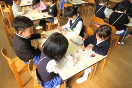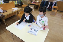 “カレンダーマーチ”の歌や、お部屋の絵本などを見ながら、それぞれが自分なりのカレンダーを作ります。