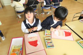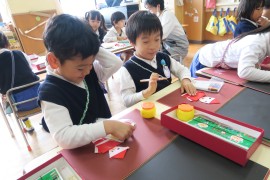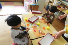 写真ギャラリー サンタの制作 2023年12月12日(火) 今年はまだ暖かい日が続いているのでそんな気がしないのですが、もうじきクリスマスですね。クリスマスの歌をうたったり、色紙や折紙を使ってサンタの制作をしたり、園でもクリスマスにちなんだ活動をしています。今週はまだ暖かいようですが、予報によると来週は寒くなるようです。クリスマスらしくなるかもしれませんが、体調を崩してしまわないように、みなさまもご自愛くださいね。 もどる