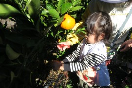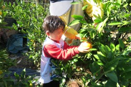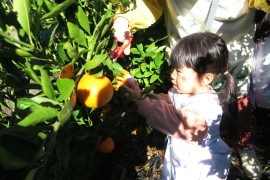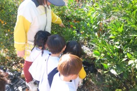 写真ギャラリー みかんの収穫~わかば組~ 2023年12月13日(水) わかば組さんが畑で出来たみかんを収穫しました。みかんの木を植えてから5年になりますが、今年はとても出来がよく、大きなみかんが20個くらいなりました。一人が一個ずつ収穫してお部屋に持って帰って、お昼ご飯の時に食べました。一人で一個を食べるには大きかったので、赤組のお兄ちゃん・お姉ちゃんとも分けっこしましたよ。 もどる
