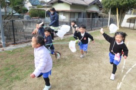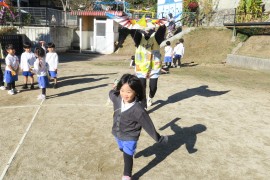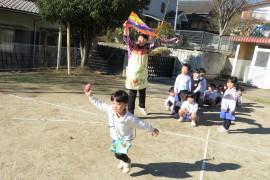 とても寒さを感じる一日でしたが、『子どもは風の子』の言葉通り、元気いっぱいに走り回って、凧あげを楽しみましたよ。