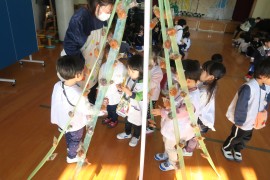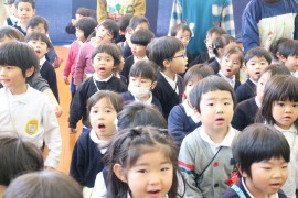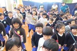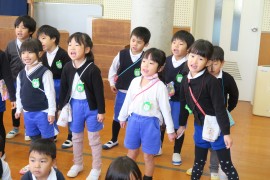 お遊戯室に集まって、園長先生の話を聞いて、クリスマスやお正月にちなんだ歌をうたいました。