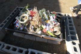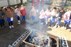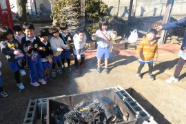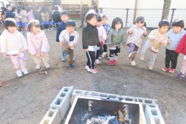 今日は“とんど”をして、お家から持って来てもらったしめ縄飾りなどを燃やしました。