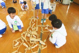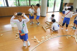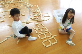 お家を作ったり、迷路を作ったり、数字を作ったりと、それぞれに思い思いの物を作って遊びました。