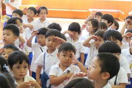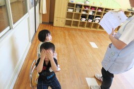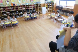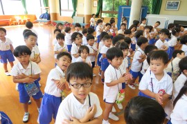 園長先生の話を聞いて、夏休みのお約束をして、『きっぷばさみのうた』を歌いました。