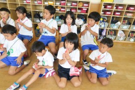 夏休み中も2号認定児を中心にたくさんの子どもが登園していますが、クラスのみんなが揃うのはこの2日間だけです。