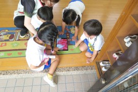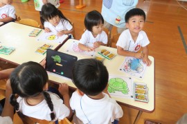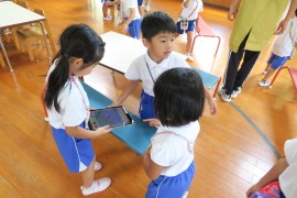 今日はスマートエデュケーションさんに来ていただいて、タブレットを使った遊びを体験しました。