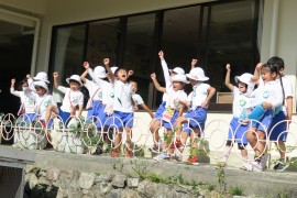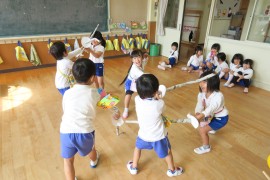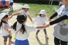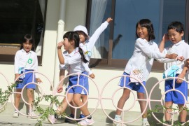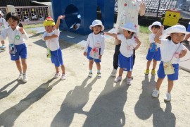 写真ギャラリー いろんな踊りを踊ってみよう 2024年10月21日(月) 昨日はお遊び大会にお越しいただき、ありがとうございました。昨日の今日で、先生たちは疲労の色が隠せませんが、子どもたちは元気いっぱいです。なかよし広場でお遊び大会の踊りのCDを流して、みんなでいろんな踊りを踊ってみました。活動の合間に何度か見た、くらいのはずなのですが、やってみたかったのでしょう、みんな楽しそうにしっかりと踊っていましたよ。 もどる