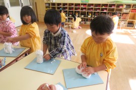 お餅のように伸びる紙粘土なので、どんな感触だったか聞いてみて下さいね。