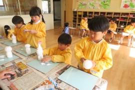 作品展への取り組み~黄組貯金箱とたんぽぽ組かぶ~