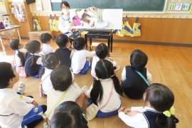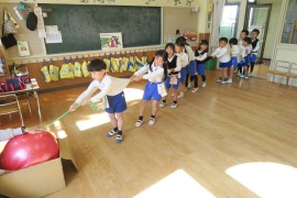 たんぽぽ組は『おおきなカブ』の紙芝居を読んで、“おおきなかぶごっこ”をしました。