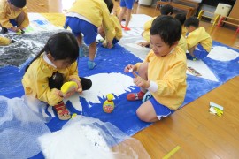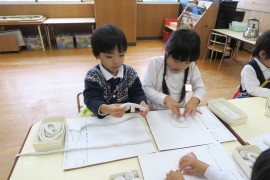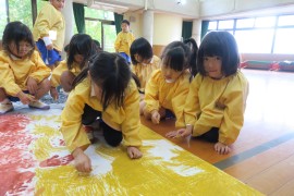 写真ギャラリー 作品展への取り組み~いろいろ~ 2024年11月15日(金) 作品展まであと2週間ほどとなりました。幼稚園ではどのクラスも作品展の取り組みがどんどん進んでいます。赤組さん・青組さんはみんなで一つのものを作り上げる協同制作が本格的に動き始めています。黄組さんは記念品や展示作品を作りつつ、その合間を狙って協同制作のおもちゃ作りをしています。わかば組さんも記念品用の手形を取りましたよ。 もどる