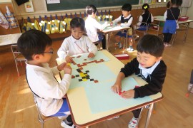 写真ギャラリー 作品展の取り組み~いろいろ2~ 2024年11月19日(火) 今日は一気に冷え込みましたね。朝の空気に“冬”を感じた方も多いのではないでしょうか。今日も幼稚園では作品展への取り組みが進みました。作品展の個人制作は、いわゆる絵という感じの『描画』と、色々な道具と手法を使って作る『遊び絵』の2種類です。今日の写真は『遊び絵』がメインですね。余談ですが、日々、作品展に向けて各クラスで色々な活動が進んでいくので、タイトルの付け方に行き詰っています。 もどる